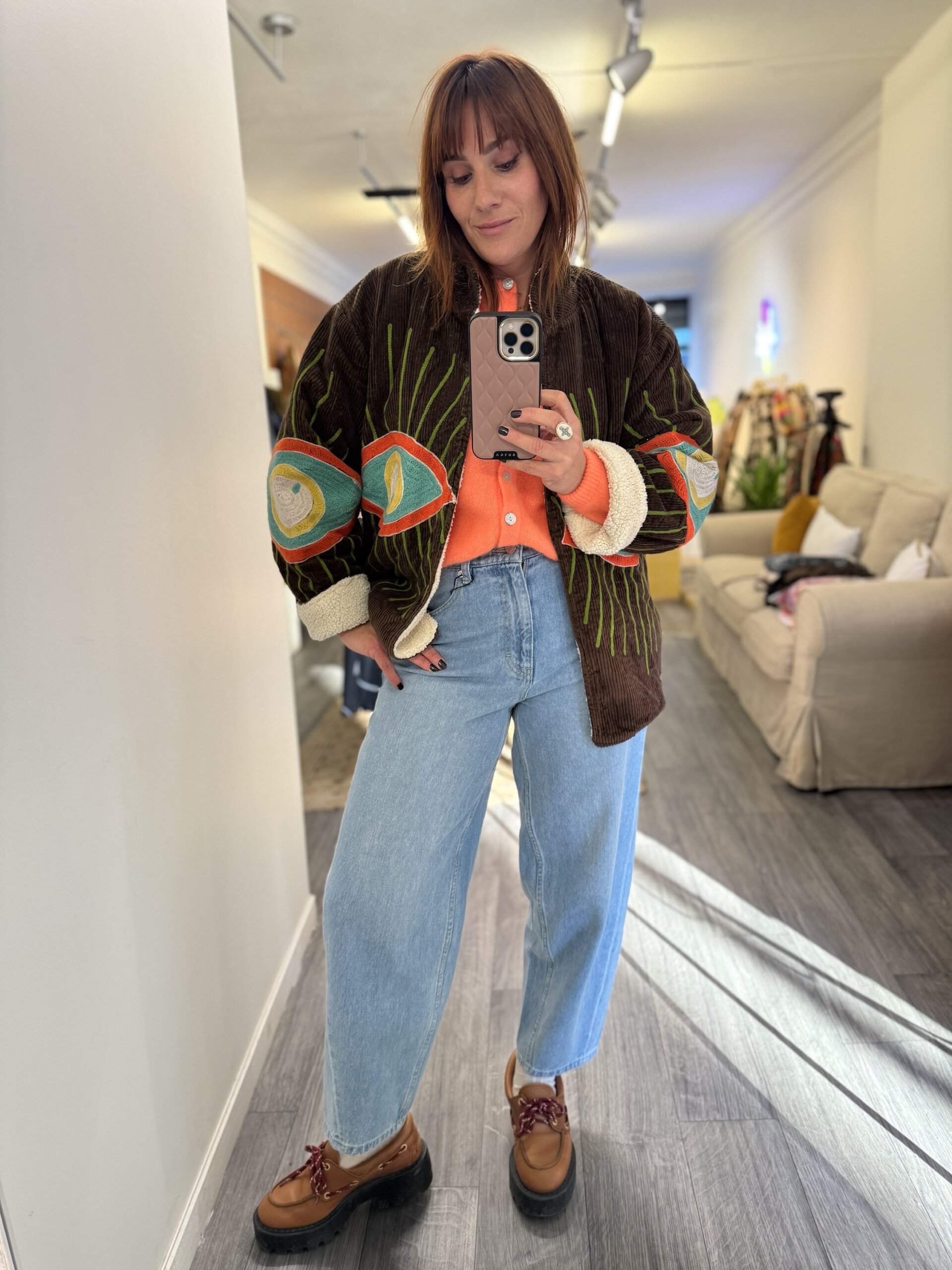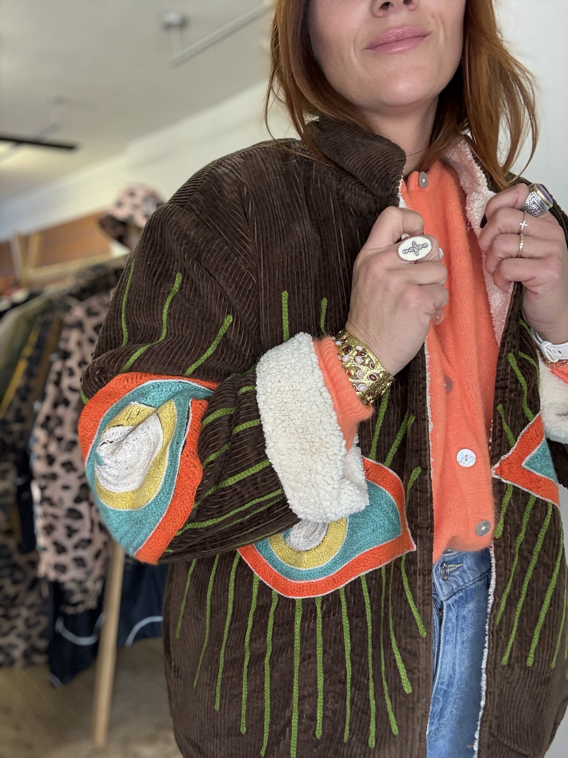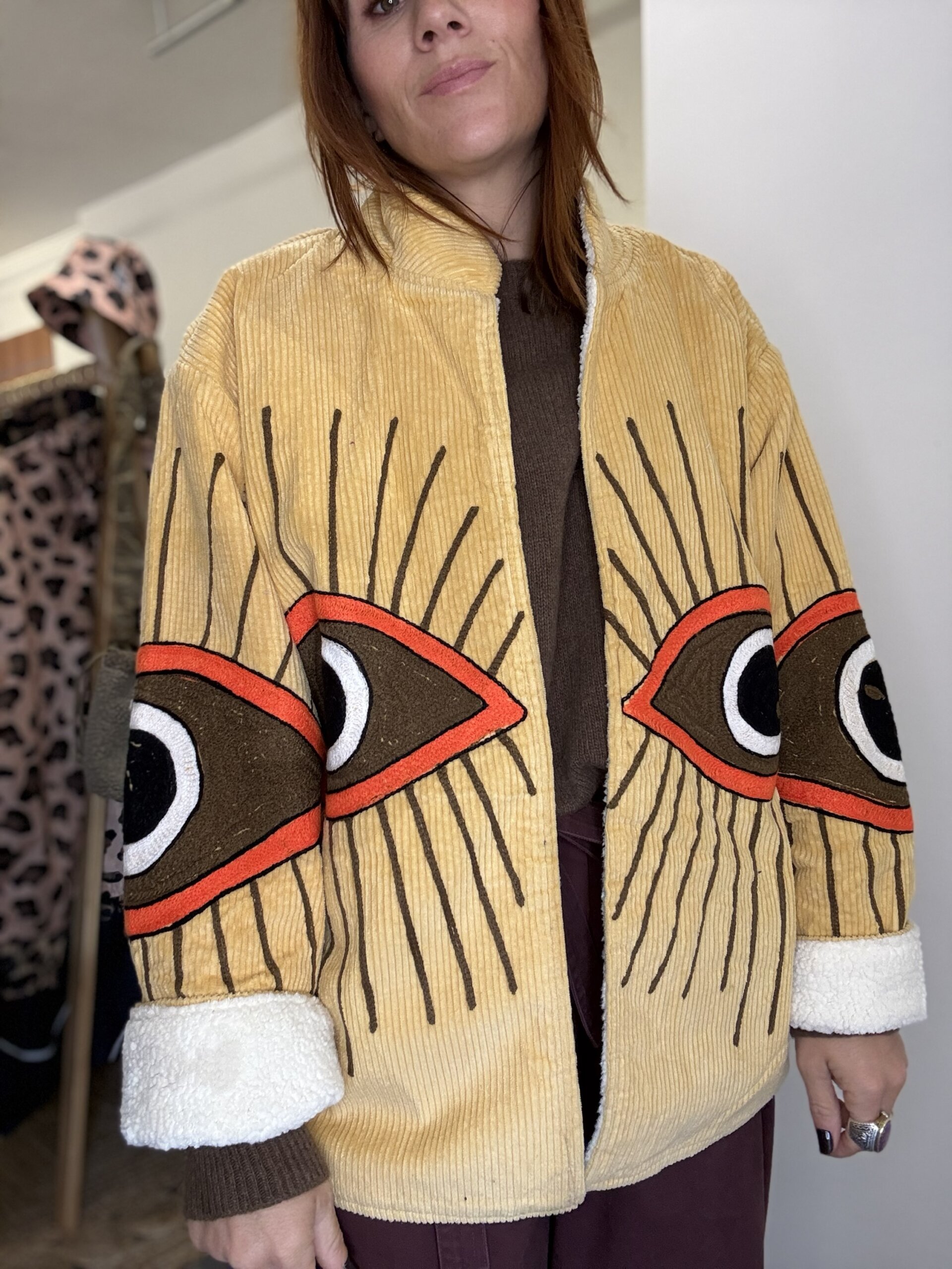Vous aviez adoré la version demi saison, la voilà dans son plus beau revêtement d’hiver ! La veste Mira revient avec une doublure sherpa douce et chaude. Vous allez adorer ses coloris marron et jaune beurre.